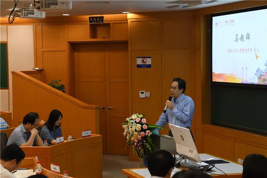 湖南大学工商管理学院马超群院长代表学院欢迎新同学们的到来!他强调当下中国正处在经济变革的关键时期,变革和调整给企业和个人的发展带来了新的挑战,却也是难能可贵的机遇和选择。“希望你们所有人从今天开始,全力以赴面向未来,过去的成绩无需忘记,却不能沉迷。未来才是你们的希望,明天虽然是未知的,但我们要把内心变成一颗太阳,始终燃烧着对未来的希望。”马院长寄语同学们,希望同学们在EMBA学习期间能充分的思考和交流,与良师益友共同学习,相互提升,“致知载物”——依靠知识的力量,科学地迎接未来,以商学智慧面对未来的诸多选择与机遇。