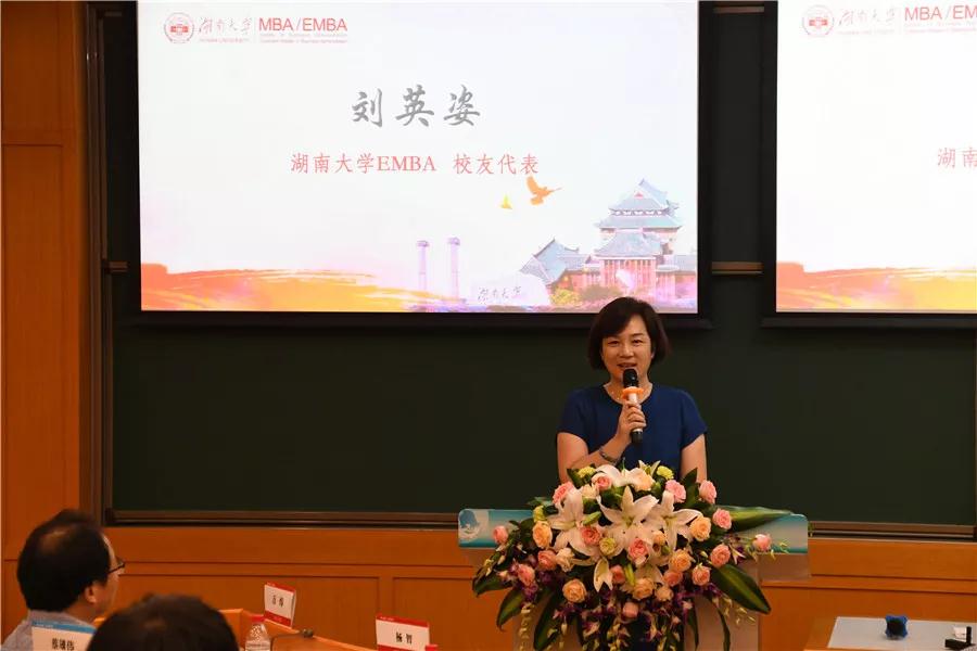 作为EMBA优秀学员代表,申湘集团总经理刘英姿与学弟学妹分享了她的学习感受,“中美贸易战的过程中,企业面临着极大的挑战,真正成功是企业的可持续发展,稳健前行。EMBA是理论和实践结合最紧密的商学教育。毕业11年,我始终紧跟学院,EMBA的学习会结合大量的企业案例,深入剖析宏观形势和政府政策,不断引爆我们的思维,激发我们的灵感,让我们在学习的过程中学有所思、学有所获,才能在面对困局时豁然开朗”。她希望学弟学妹们认清学习的方向和目的,持续不断的坚持、努力,“企业管理者只有具备学习意识,方能不落后于时代”。