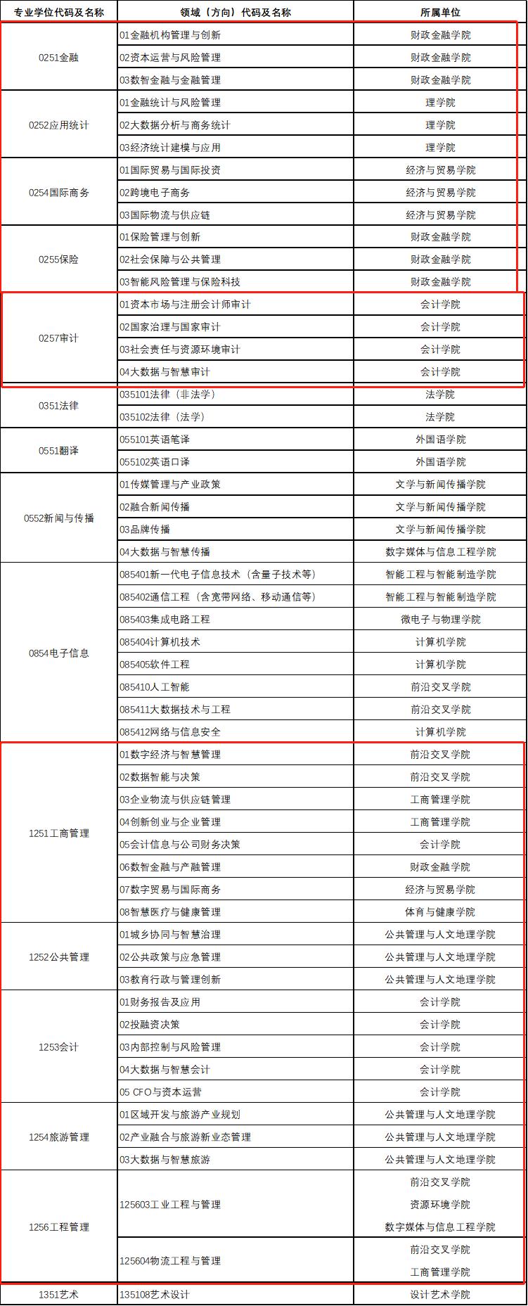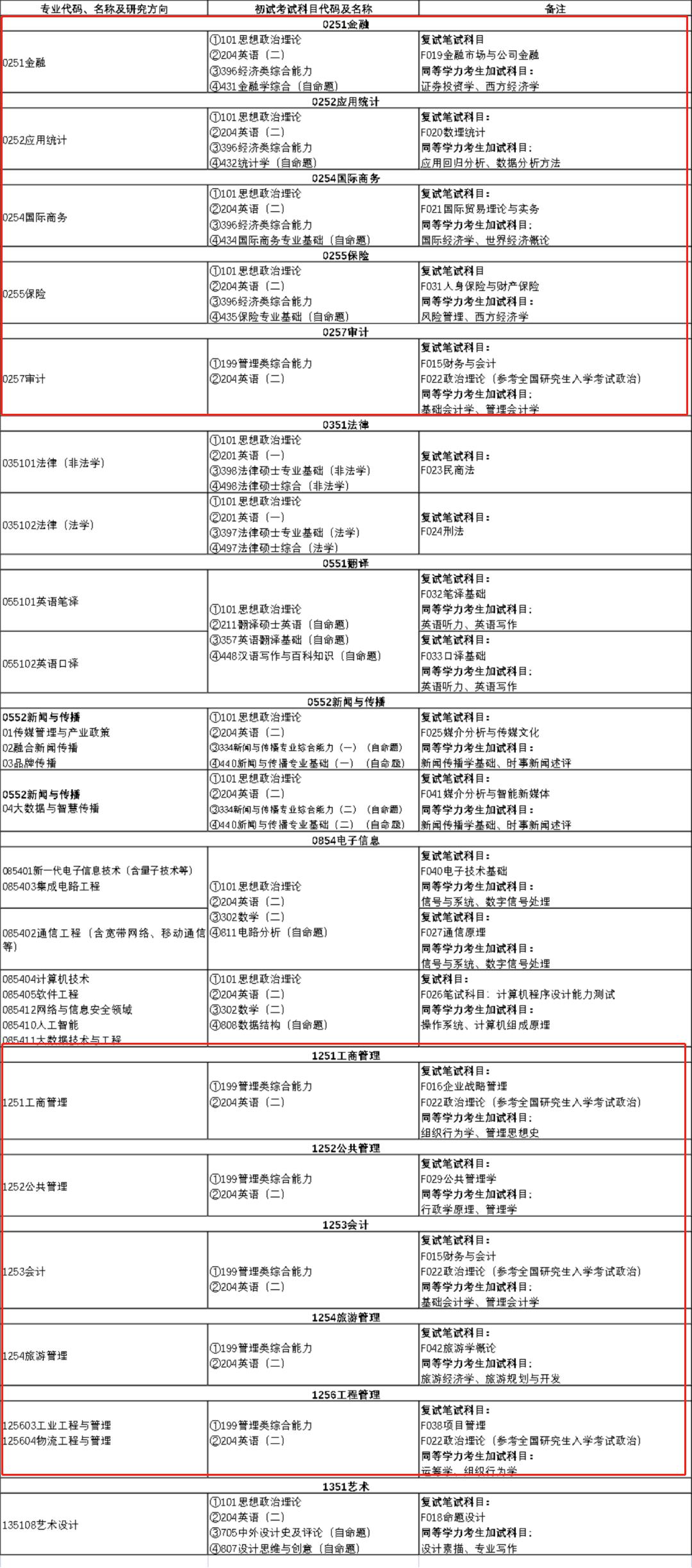 研究生招生专业目录及考试科目一览表(专业硕士)