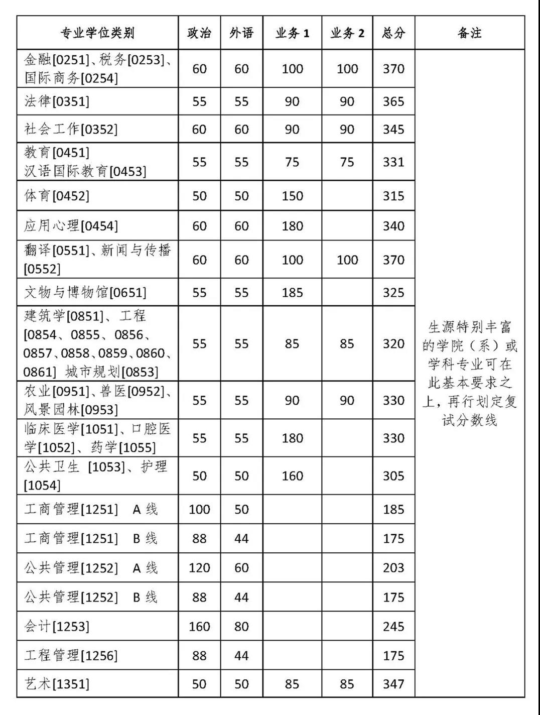 浙江大学2020年硕士研究生招生复试基本分数线发布