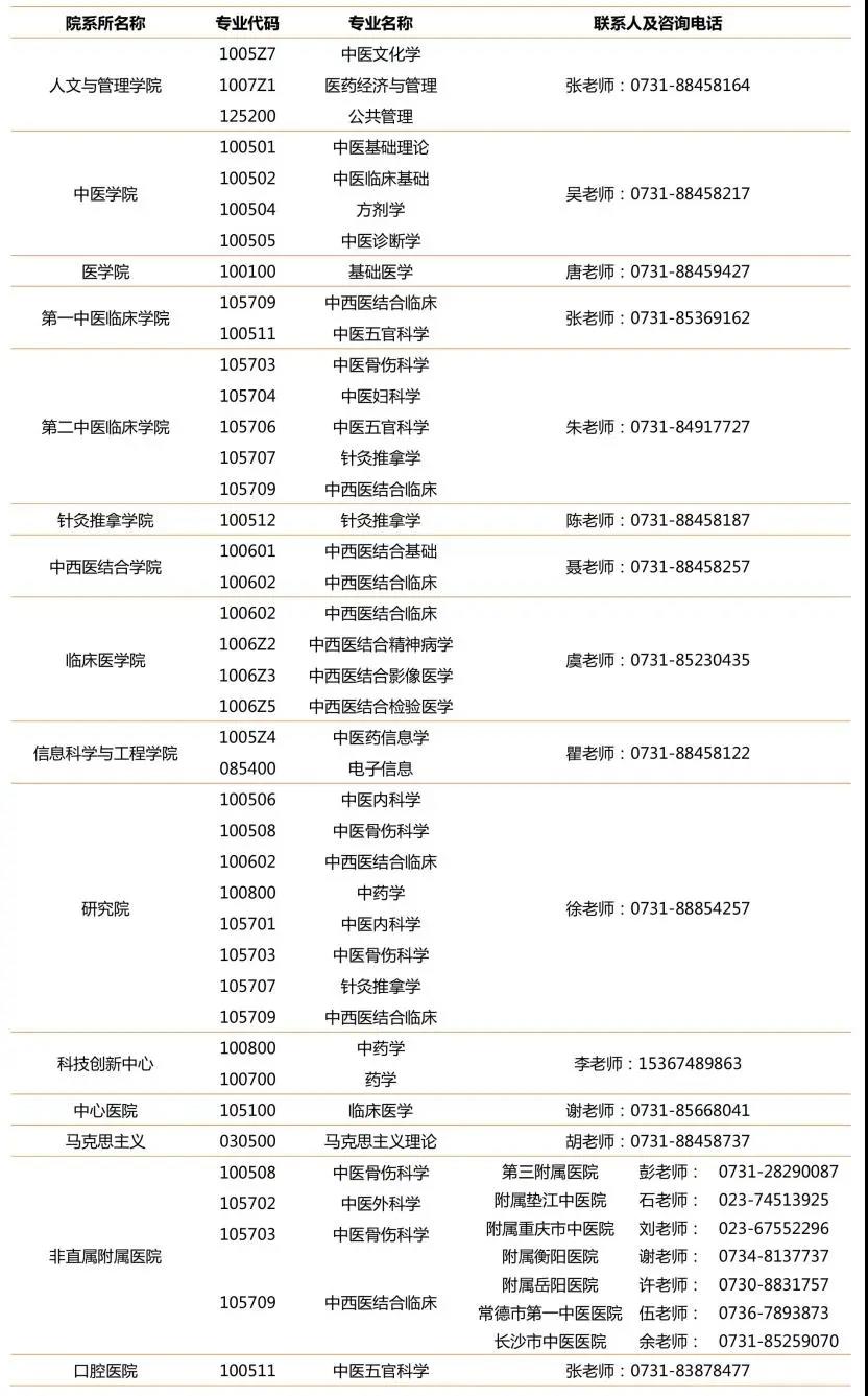 5.拟接受调剂的专业和所在学院联系方式如下表,具体接受调剂的专业和名额,届时以“调剂系统”中公布的缺额信息为准。