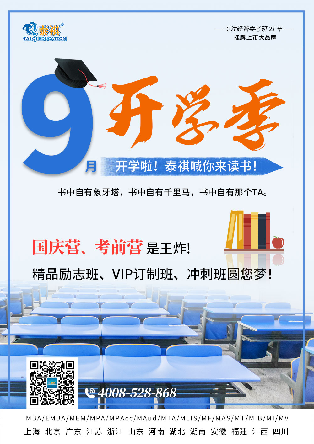 2013年泰祺教育湖南分校成立,风雨走来,湖南泰祺历年7年,目前开设有长沙河东、河西校区、衡阳校区,引领了数千考生成功迈入名校殿堂,获得了高校、考生一致认可!